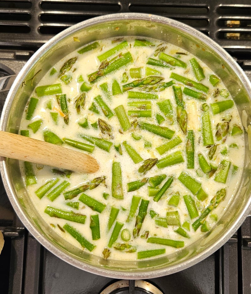 Tikkeltje overmoedig achteraf, een recept van een topkok voor een soepje van groene asperges en doperwtjes gevolgd. Zelfgemaakte groentebouillon als basis waarbij je na een half uur de groenten eruit moet zeven en weggooien (?!) En dan de asperges en overige ingrediënten zachtjes moet laten koken. Dan de soep pureren. So far, so good. Dan volgen de magische woorden; druk alles door een zeef..... Uren later, ik overdrijf niet, is er inderdaad een fluweelzacht soepje geboren. Met gebrande hazelnootjes en een beetje tijm opdienen. Nou, eet smakelijk!