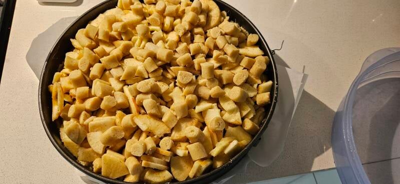Bak je nou weer diezelfde appeltaart? Jazeker!! Oma's recept. Maar dan echt van mijn oma. (Of bakten alle oma's met het1-2-3 recept?) Hollandse appeltjes, meel, rietsuiker een flinke snuf kaneel en natuurlijk echte roomboter. Met 2 extra ingredienten voor de fijnproevers..proef maar!