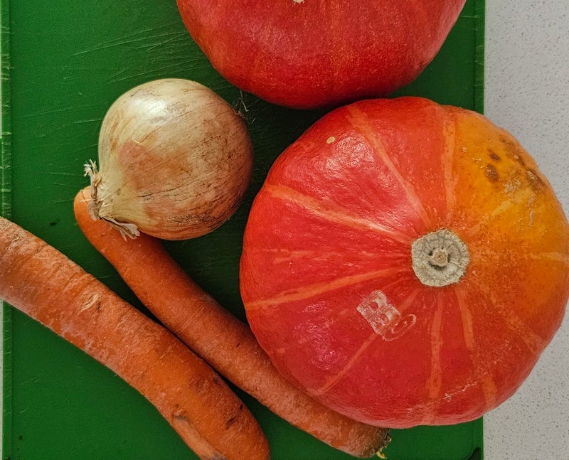 Omdattie zo lekker is: verse soep van geroosterde paprika's en tomaat. En nog veel meer groenten. Het regent af en aan. En als je hier dan toch even schuilt....